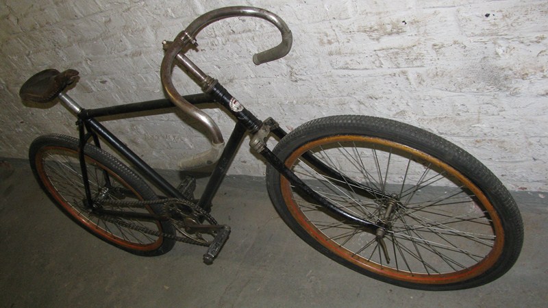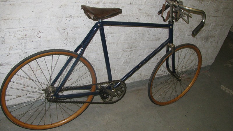 Hier zwei Rennmaschinen aus Lindenthal Das blaue Bahnrad aus dem Jahre 1920 mit Eady Naben und das spätere Straßenrennrad mit 26er Ballonreifen (!) aus den dreissiger Jahren. Hier gab es Emailierte Steuerkopfschilder Beide Räder sind mit Holzfelgen ausgerüstet.