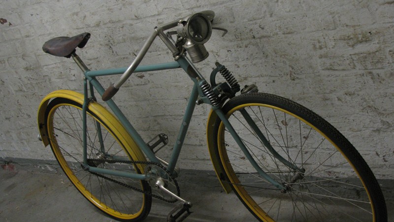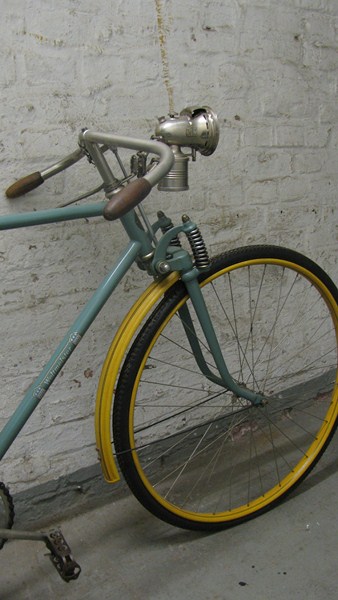 Noch ein Rad mit Tigergabel. Allerdings ein späteres. Der originale „Weltmeister“ Halbrenner hatte eigentlich eine starre Gabel.