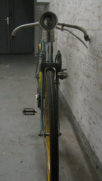 Dieses Rad wurde aber mit der Doppelfeder Tigergabel nachgerüstet. Es besticht durch ein schwebeähnliches Fahren. Das macht richtig Spaß! Hier merkt man immer noch, warum Gabeln aus Köln Lindenthal einst Weltgeltung hatten. Die Doppelfeder Tiger Gabel war sehr lange Bestandteil des Produktionsangebotes der Köln Lindenthaler Metallwerke und wurde auch von vielen anderen Herstellern in Fahrräder und Mopets verbaut.