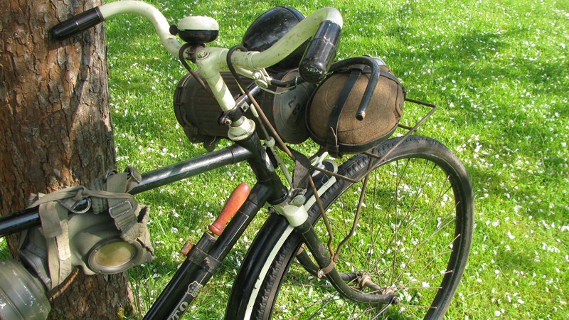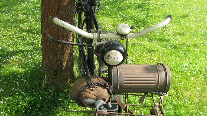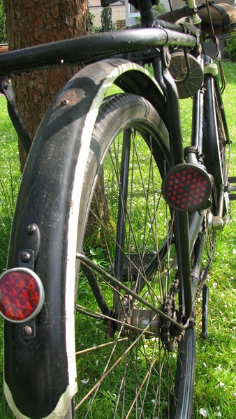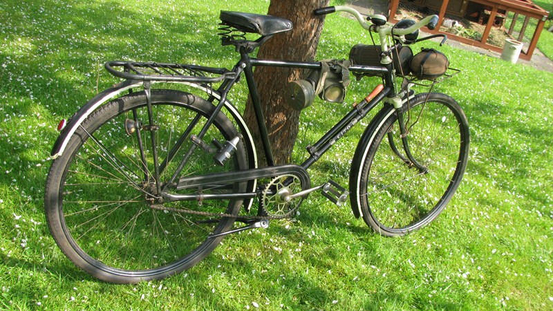 Zeitzeuge aus Deutschlands düsterster Zeit:  Das Rad eines Luftschutzwartes. Er war in Köln unterwegs und hatte darauf zu achten, dass alle Fenster verdunkelt waren. Keine schöne Aufgabe während der vielen Bomben- Angriffe.
