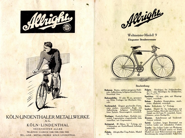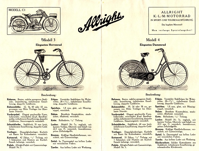 Neben den Rädern werden auch die Motorräder gezeigt, Werbung der zwanziger Jahre.
